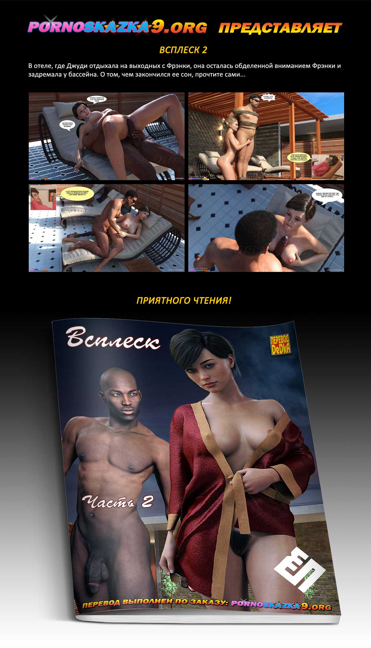 Порно комикс «Всплеск. Часть 2.» В отеле, где Джуди отдыхала на выходных с Фрэнки, она осталась обделенной вниманием Фрэнки и задремала у бассейна. О том, чем закончился ее сон, прочтите сами…
